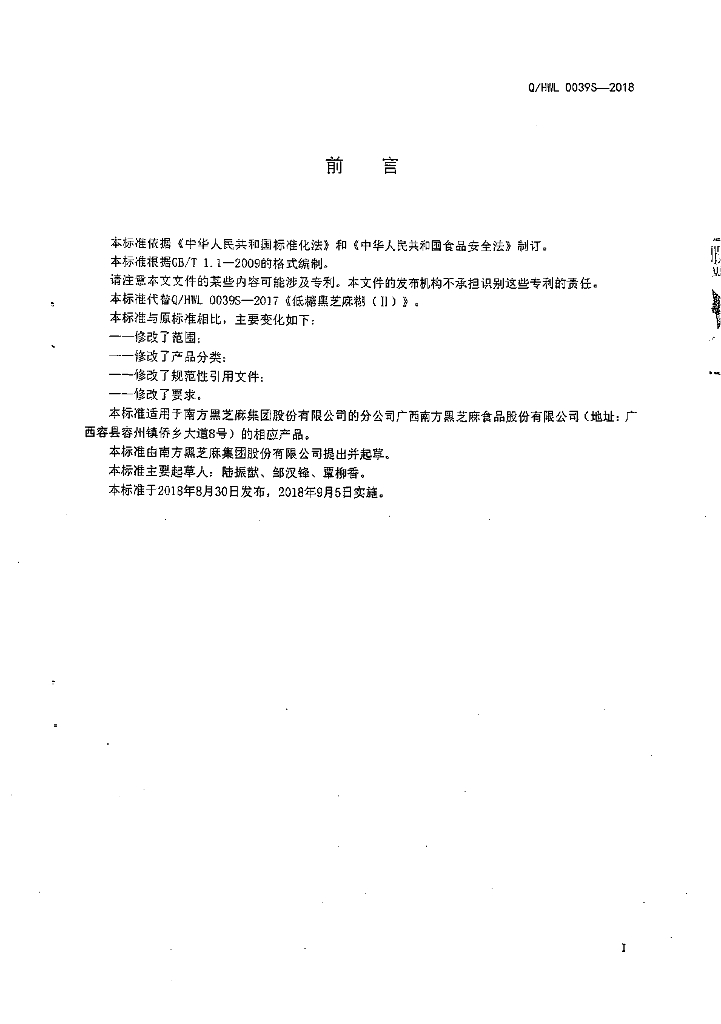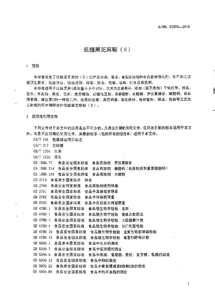 Q/HWL 0039S-2018 低糖黑芝麻糊(||)