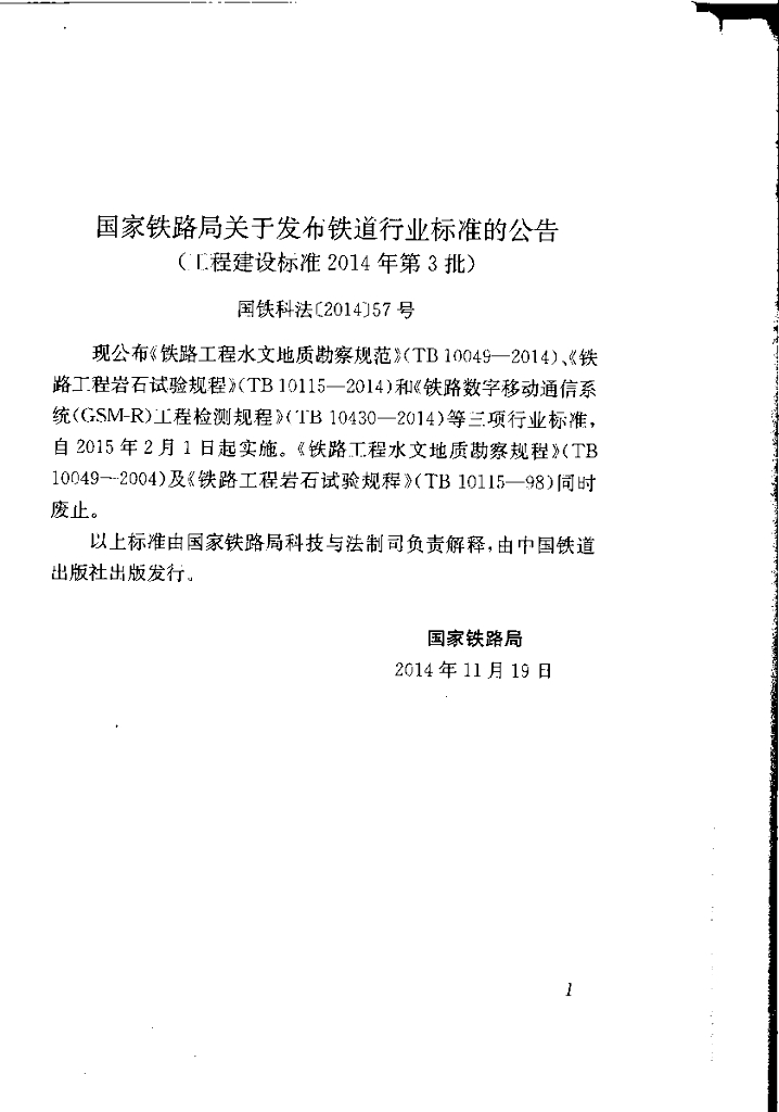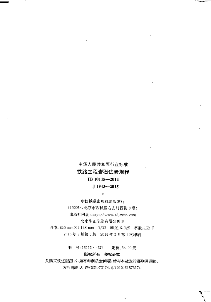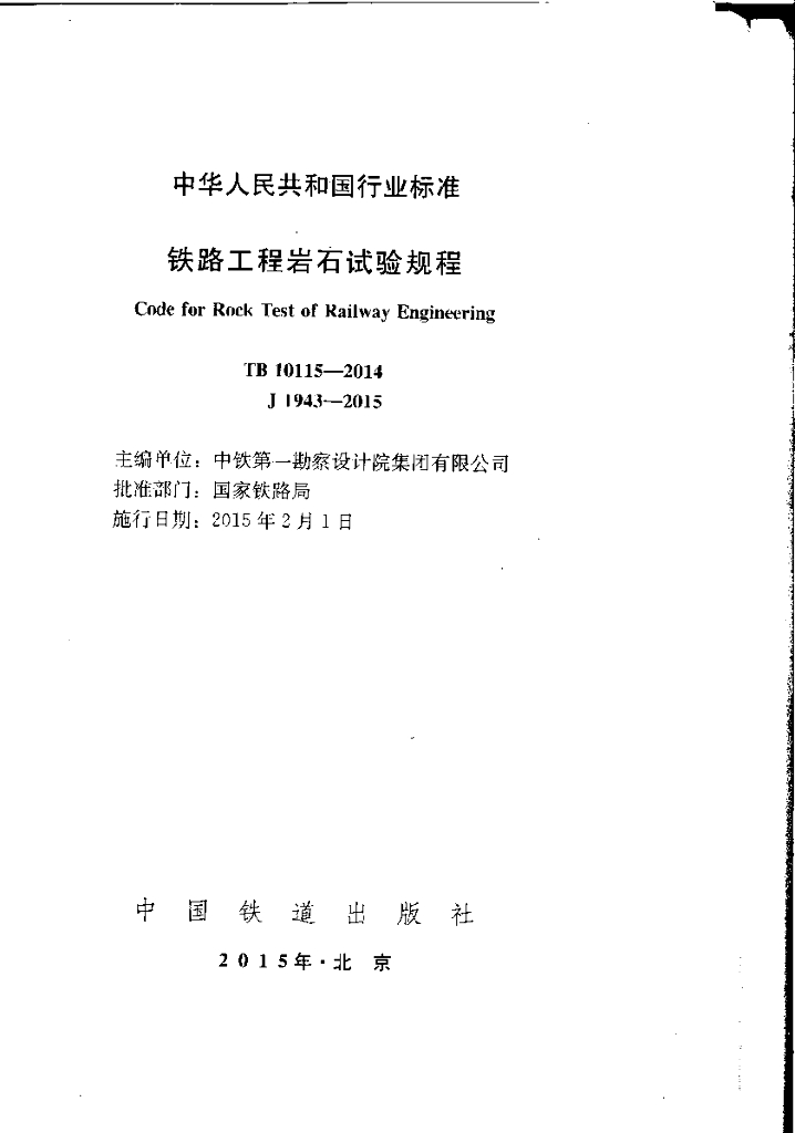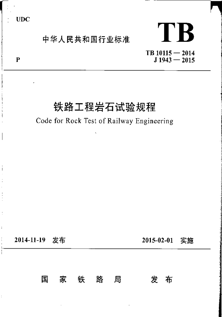 TB 10115-2014 铁路工程岩石试验规程