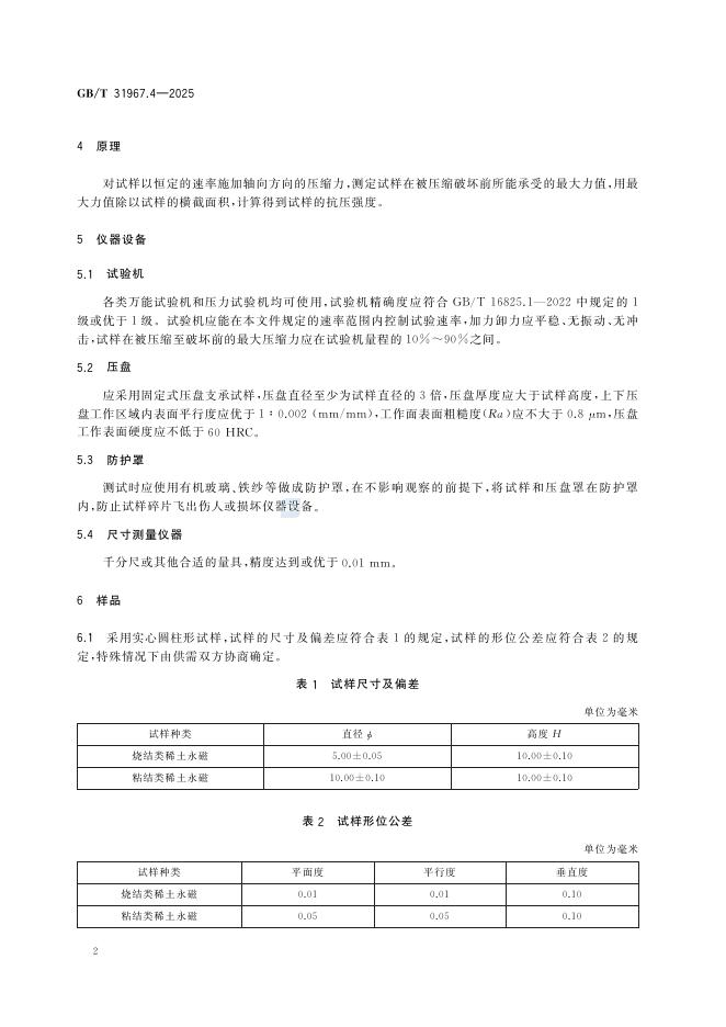 GB/T 31967.4-2025 稀土永磁材料物理性能测试方法 第4部分:抗压强度的测试
