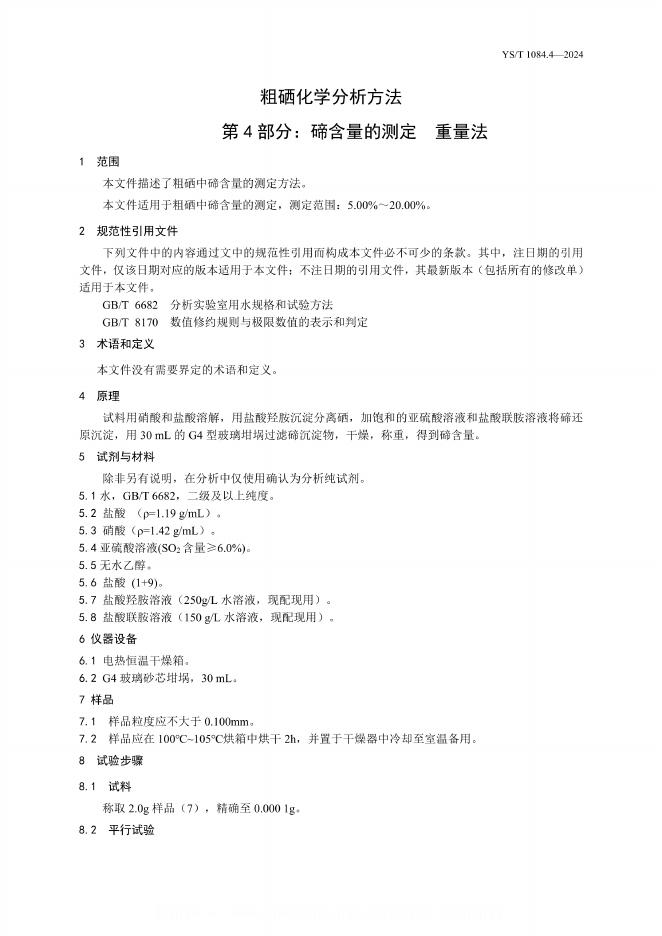 YS/T 1084.4-2024 粗硒化学分析方法 第4部分:碲含量的测定 重量法