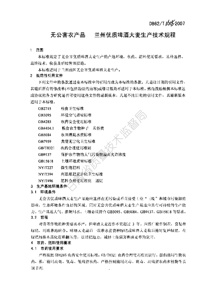 DB62/T 1605-2007 无公害农产品 兰州优质啤酒大麦生产技术规程