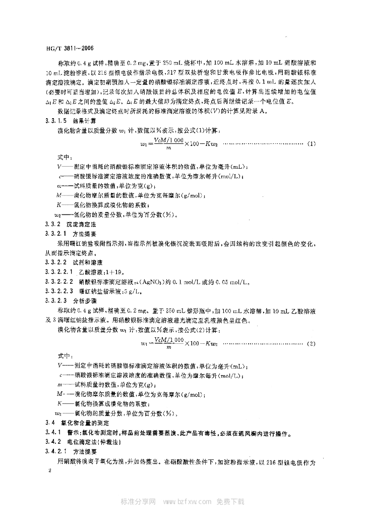 HG/T 3811-2006 工业溴化物试验方法