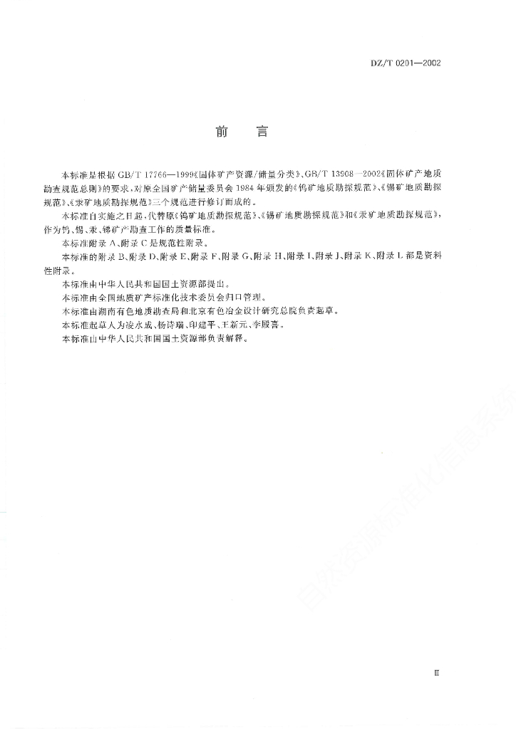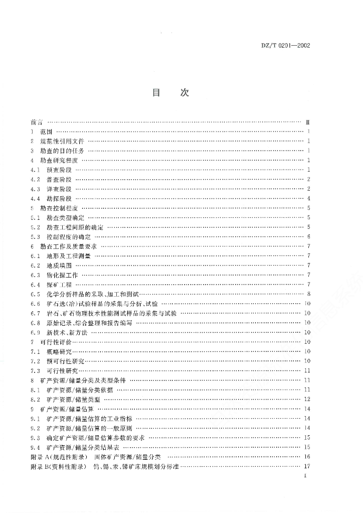 DZ/T 0201-2002 钨、锡、汞、锑矿产地质勘查规范