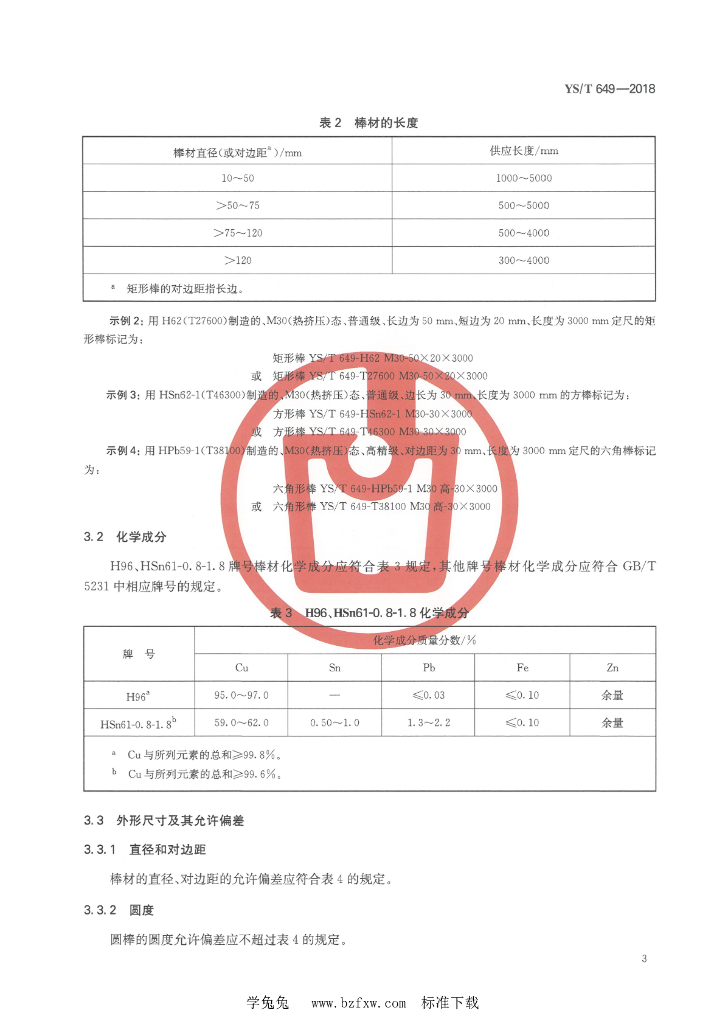 YS/T 649-2018 铜及铜合金挤制棒