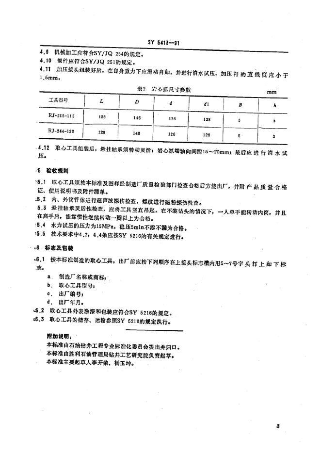 SY 5413-1991 加压式常规取心工具