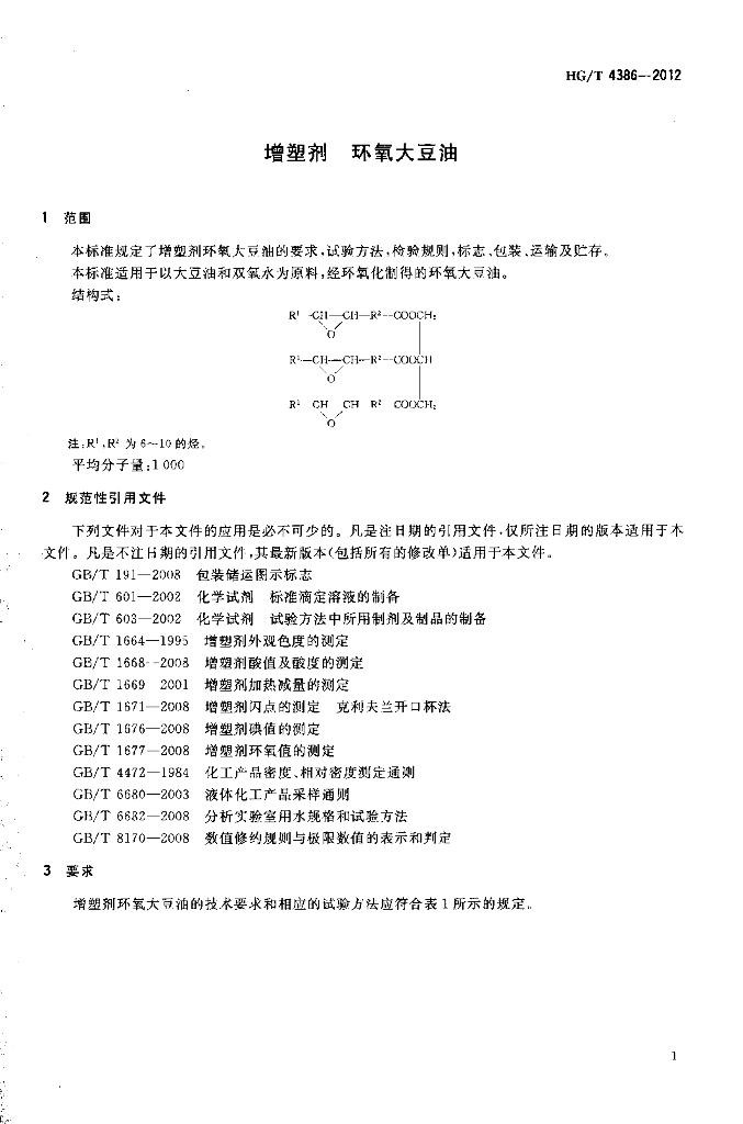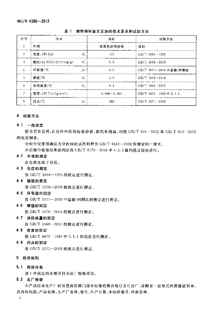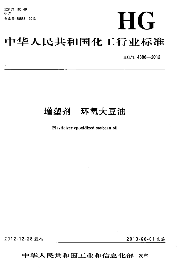 HG/T 4386-2012 增塑剂 环氧大豆油