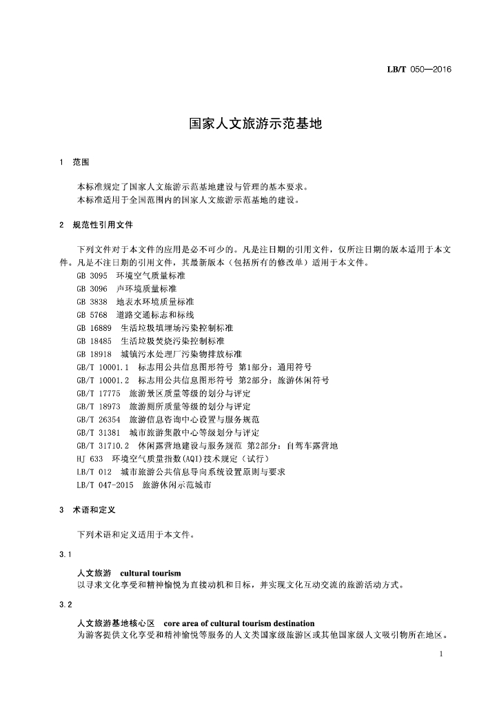 LB/T 050-2016 国家人文旅游示范基地