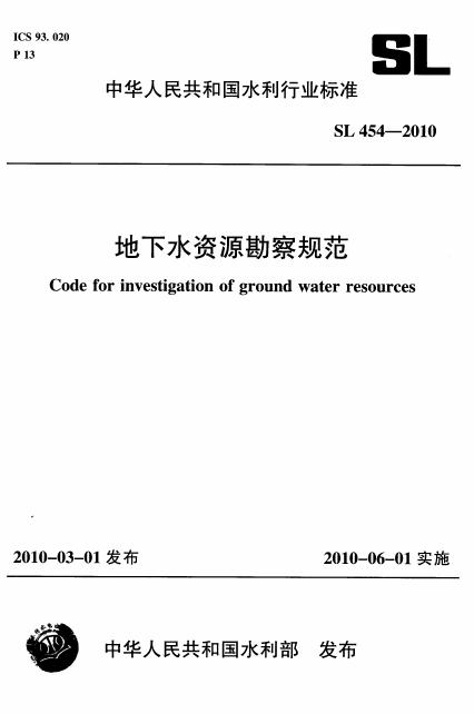 SL 454-2010 地下水资源勘察规范(附条文说明)