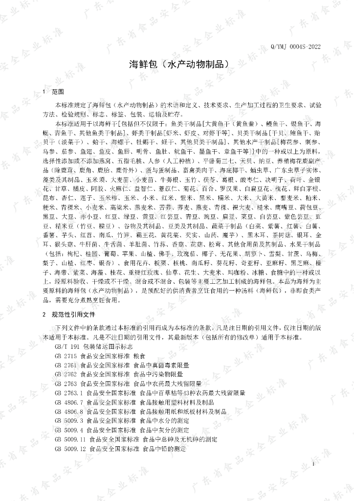 Q/YMJ 0004S-2022 海鲜包(水产动物制品)