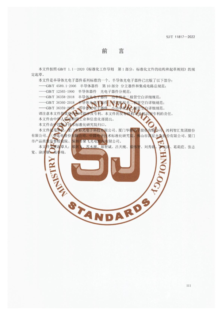 厦门多彩光电子科技有有限公司、厦门华联电子股份有限公司、鸿利智汇集团股份有限公司、三安光电股份有限公司、中国电子技术标准化研究院、佛山市国星光电股份有限公司、厦门市产品质量监督检验院、深圳市聚飞光电股份有限公司