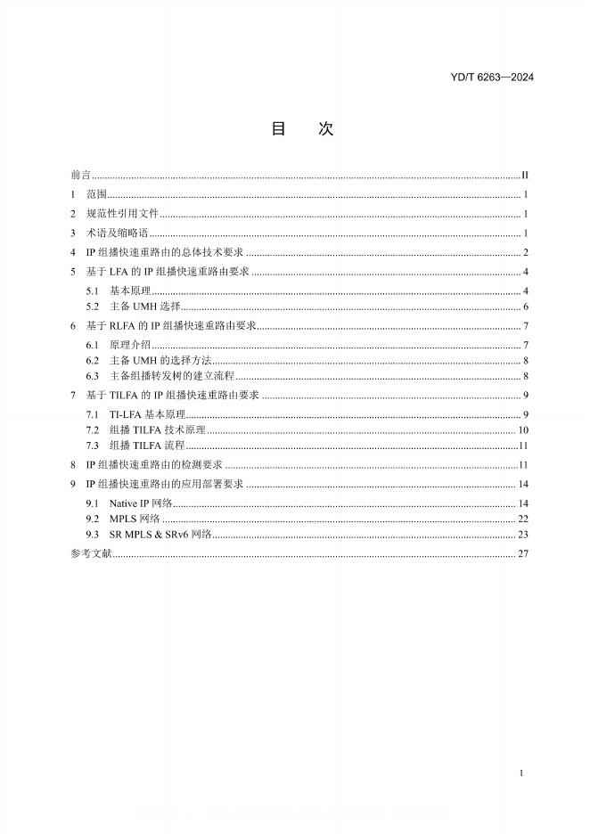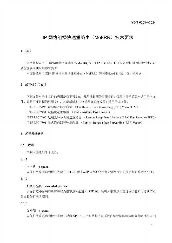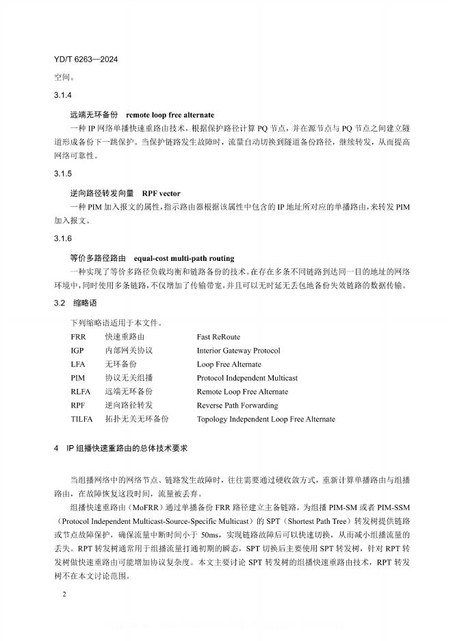 YD/T 6263-2024 IP网络组播快速重路由(MoFRR)技术要求
