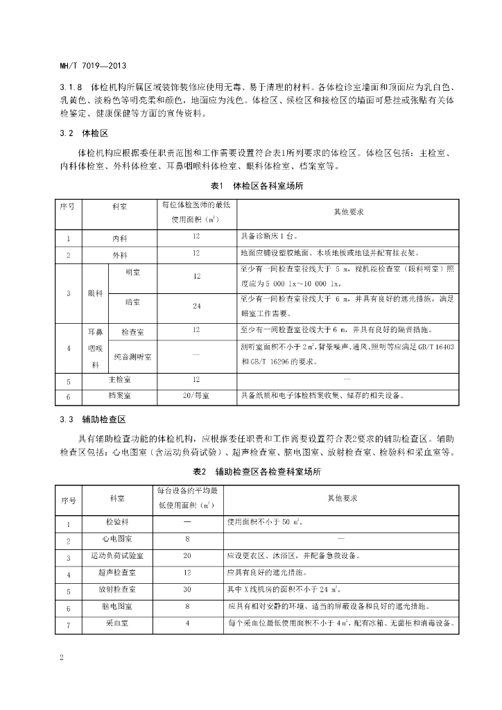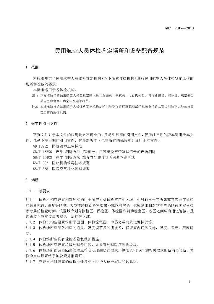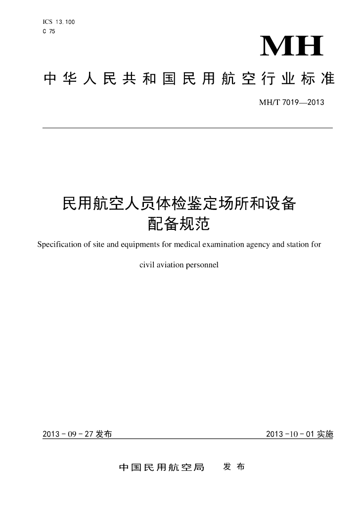 MH/T 7019-2013 民用航空人员体检鉴定场所和设备配备规范