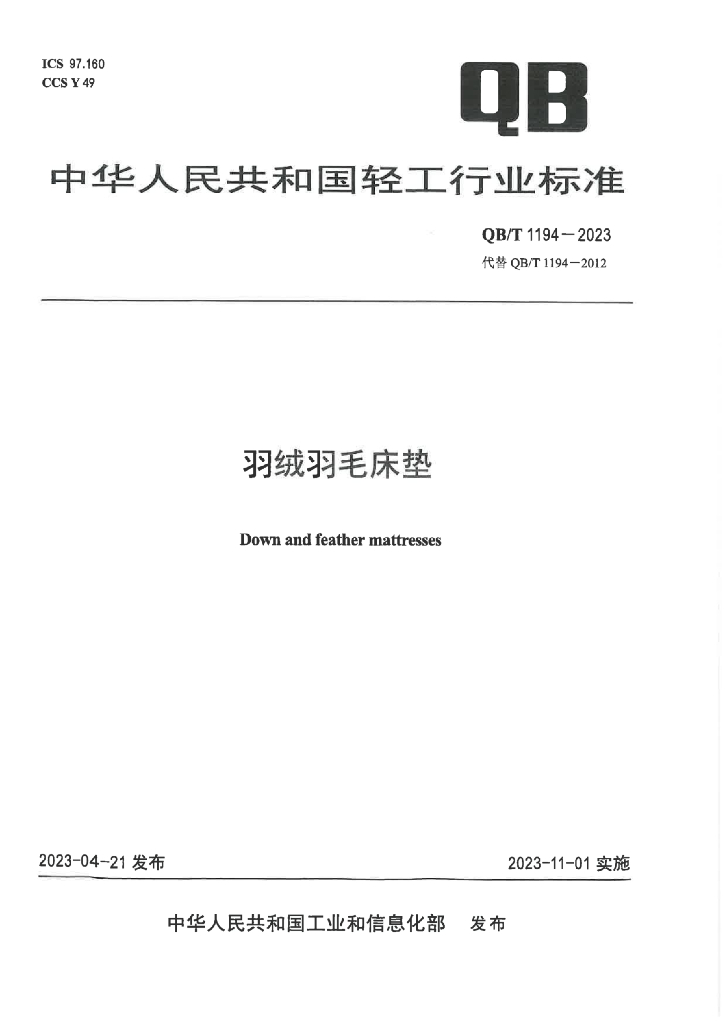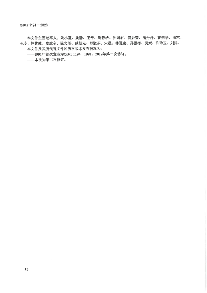 - 代替标准:QB/T 1194-2012