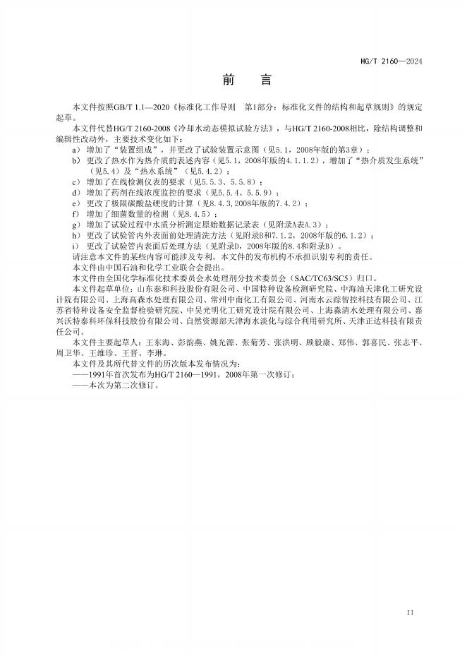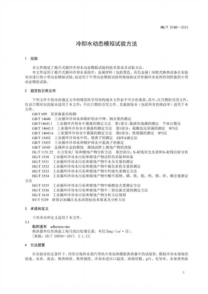 HG/T 2160-2024 冷却水动态模拟试验方法
