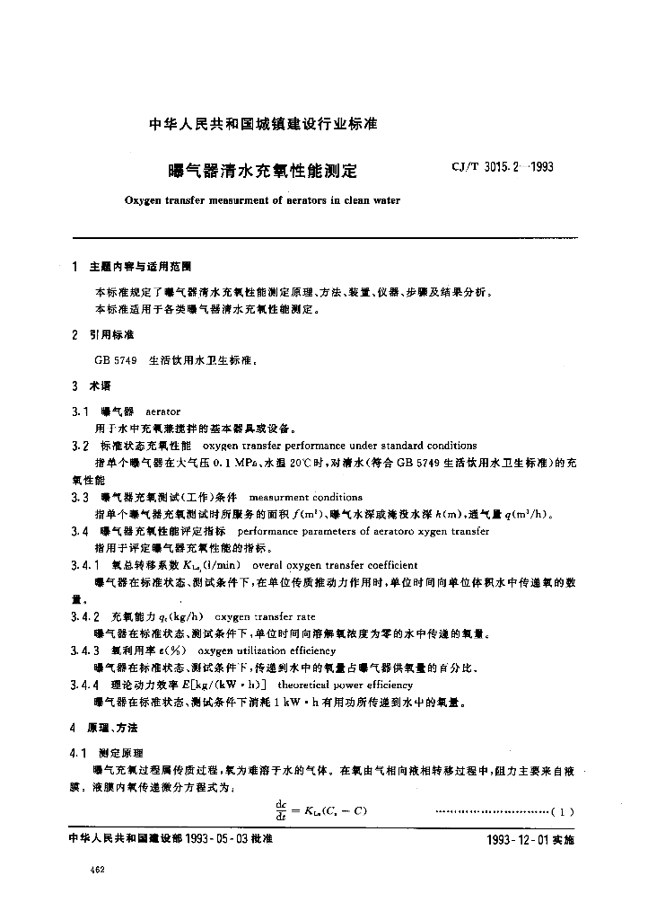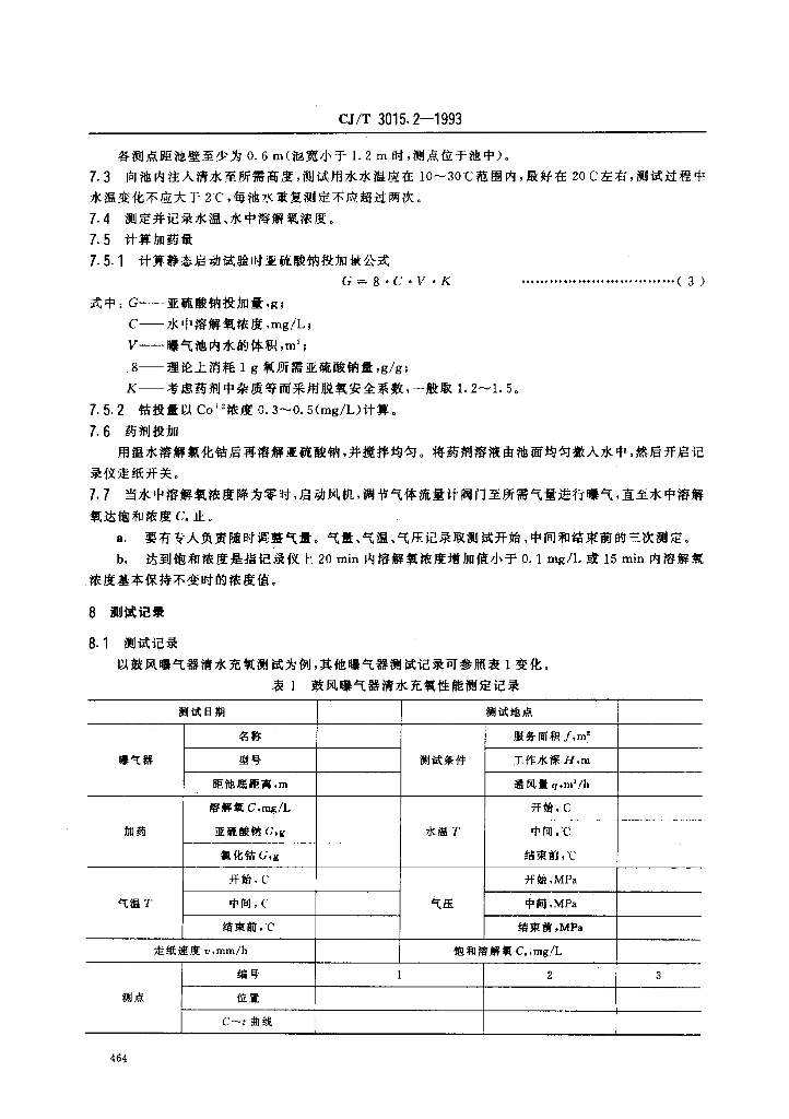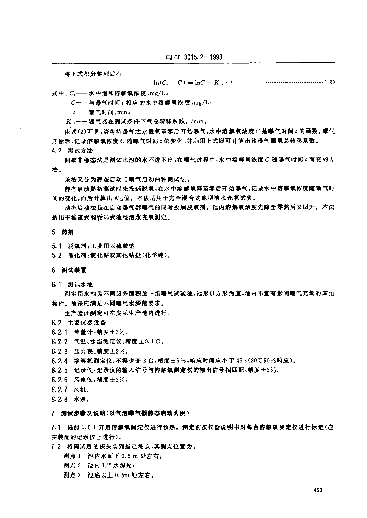 CJ/T 3015.2-1993 曝气器清水充氧性能测定