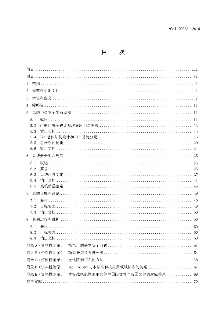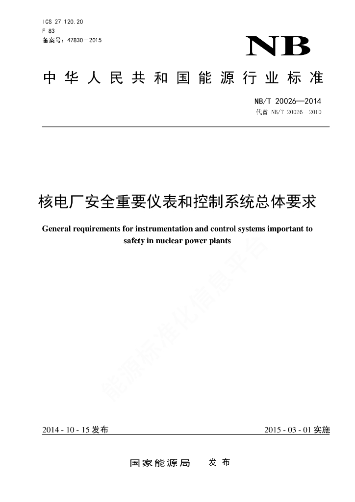 NB/T 20026-2014 核电厂安全重要仪表和控制系统总体要求