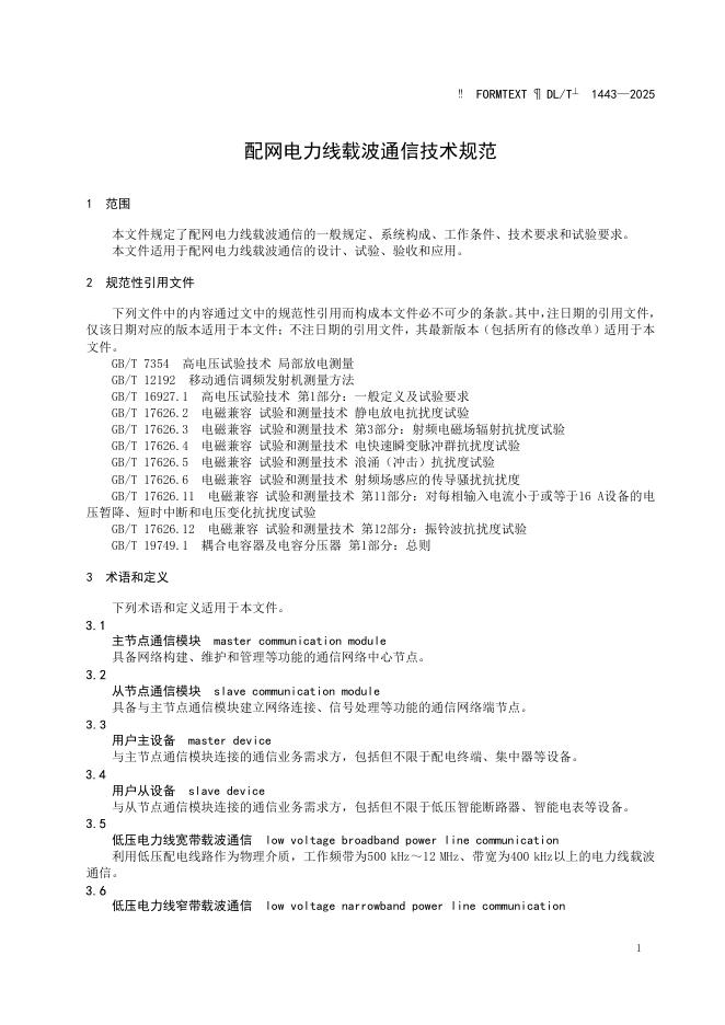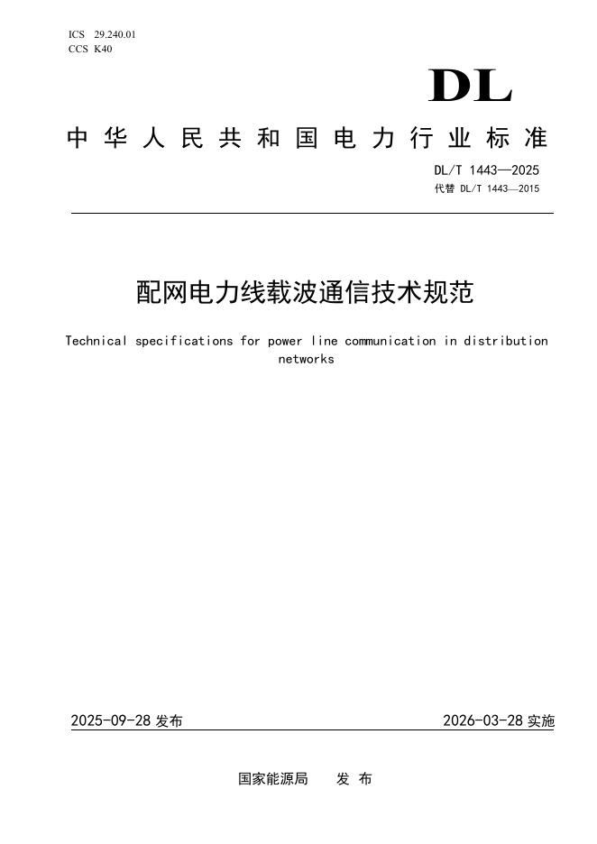DL/T 1443-2025 配网电力线载波通信技术规范