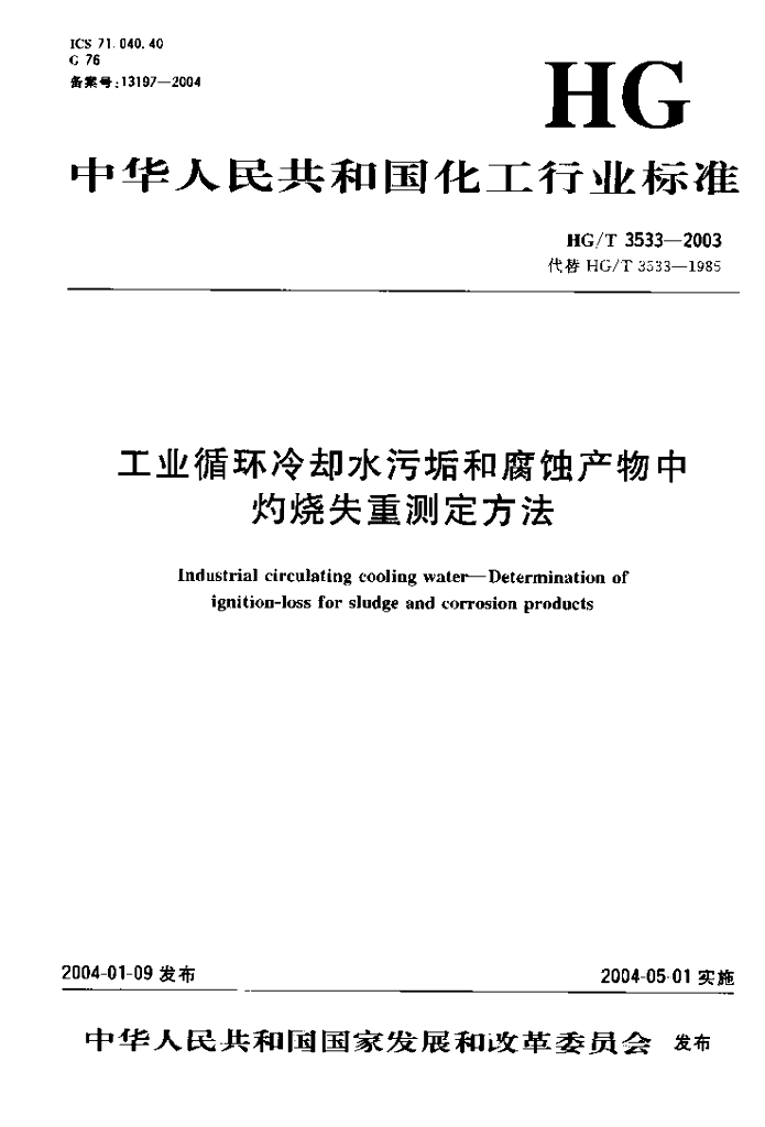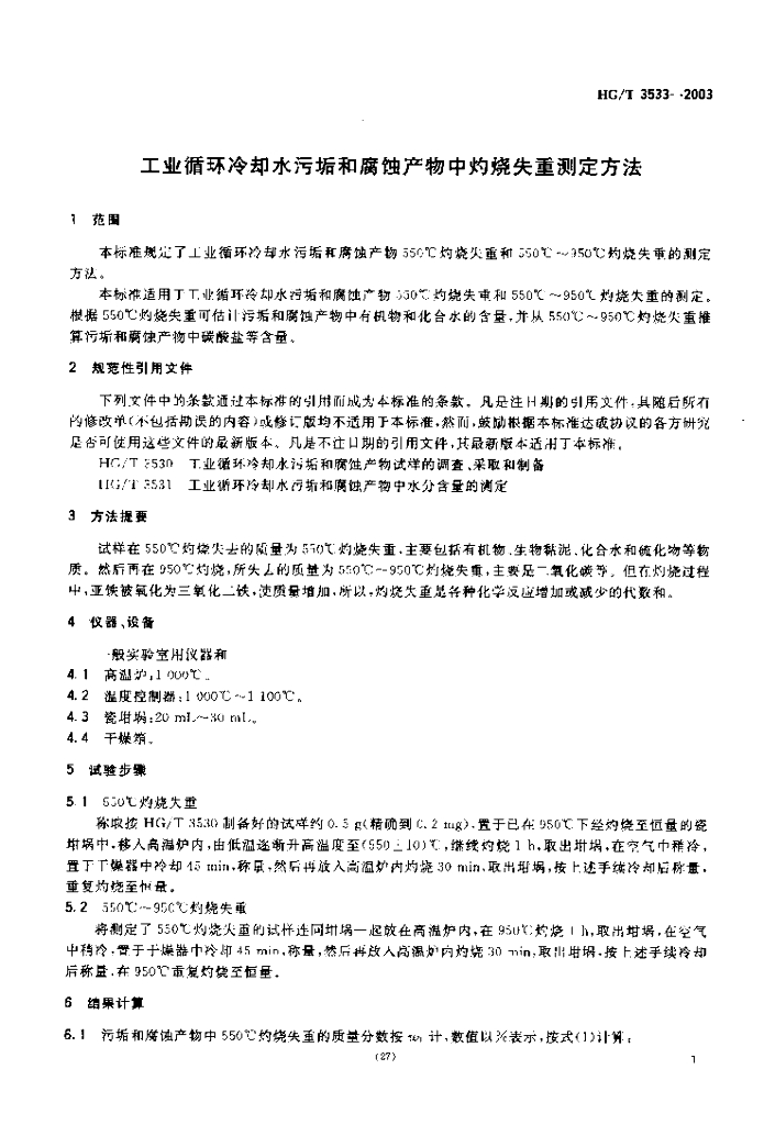 HG/T 3533-2003 工业循环冷却水污垢和腐蚀产物中灼烧失重测定方法