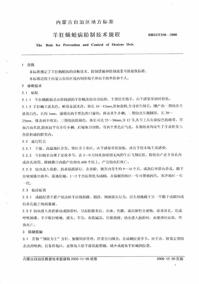 DB15/T 350-2000 羊狂蝇蛆病防制技术规程