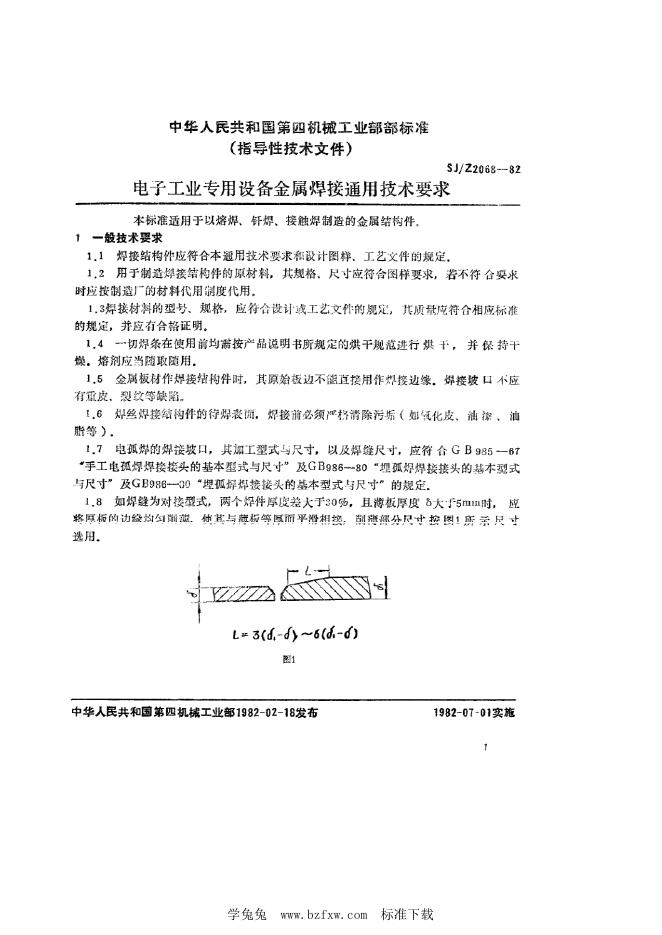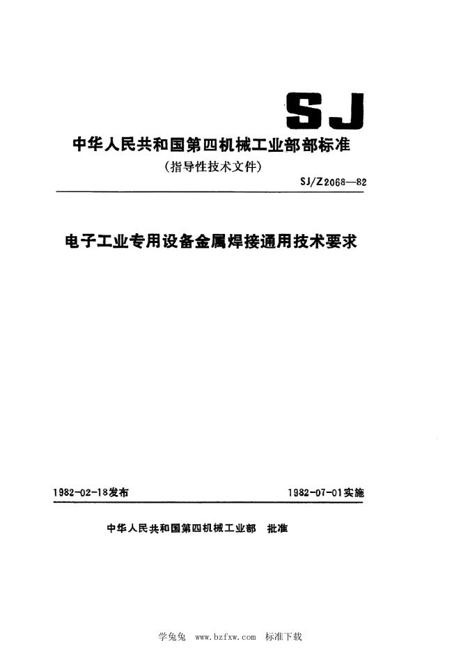 SJ/Z 2068-1982 电子工业专用设备金属焊接通用技术要求