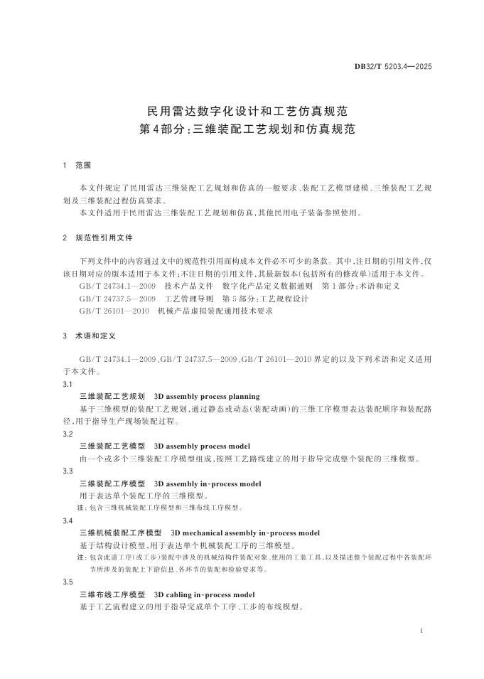 DB32/T 5203.4-2025 民用雷达数字化设计和工艺仿真规范 第4部分:三维装配工艺规划和仿真规范