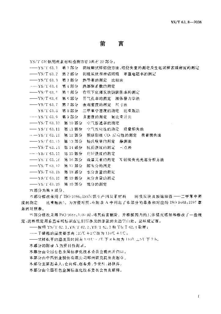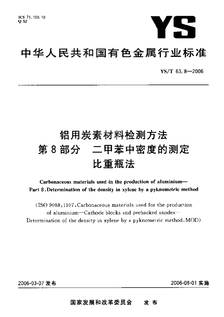 YS/T 63.8-2006 铝用碳素材料检测方法 第8部分:二甲苯中密度的测定 比重瓶法