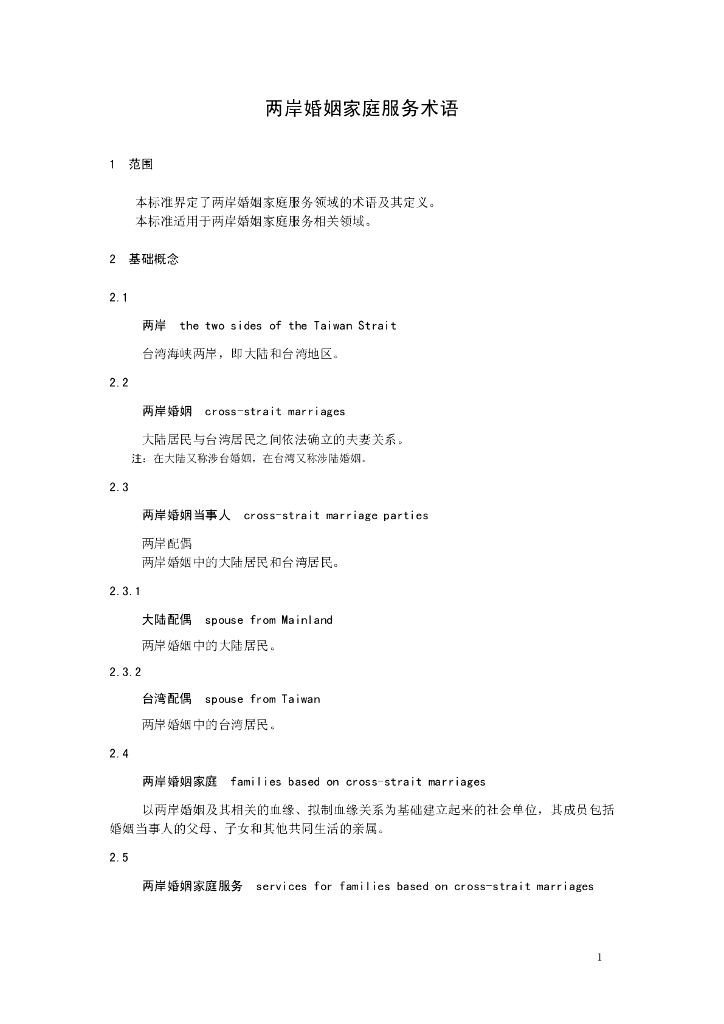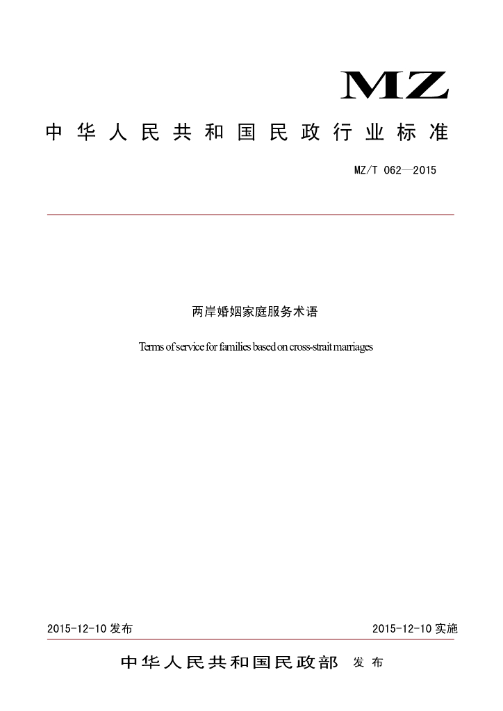 MZ/T 062-2015 两岸婚姻家庭服务术语