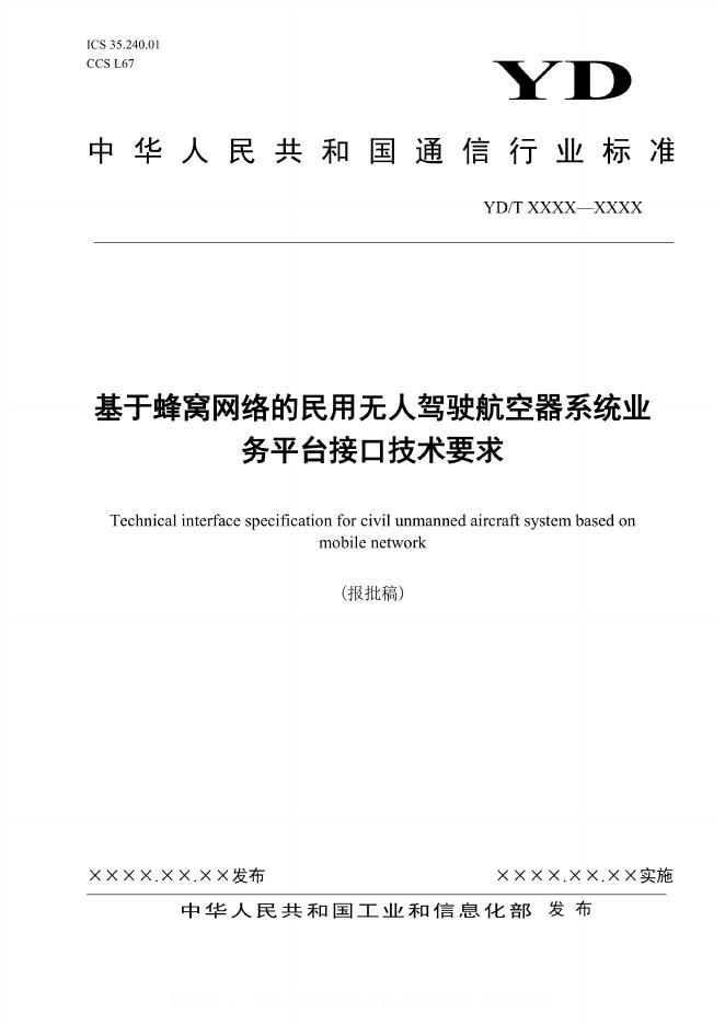 YD/T 6280-2024 基于蜂窝网络的民用无人驾驶航空器系统业务平台接口技术要求