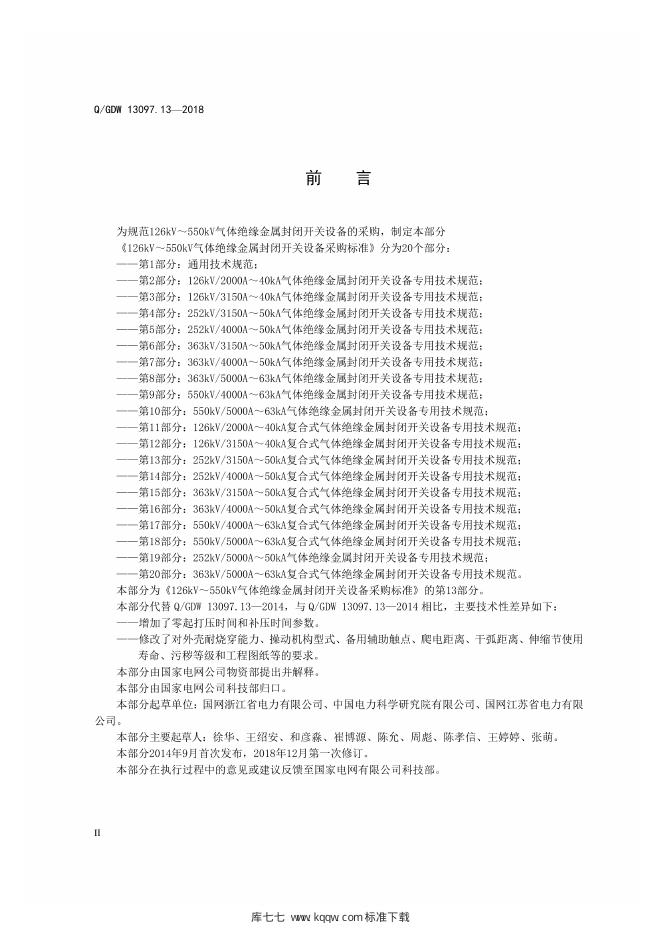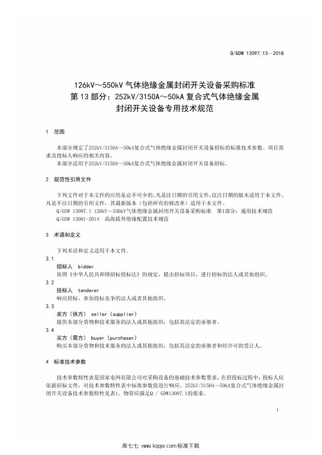 Q/GDW 13097.13-2018 126kV~550kV气体绝缘金属封闭开关设备采购标准 第13部分:252kV 3150A~50kA复合式气体绝缘金属封闭开关设备专用技术规范