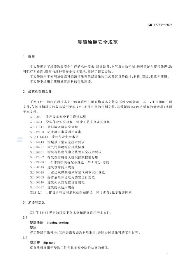 GB 17750-2025 浸漆涂装安全规范