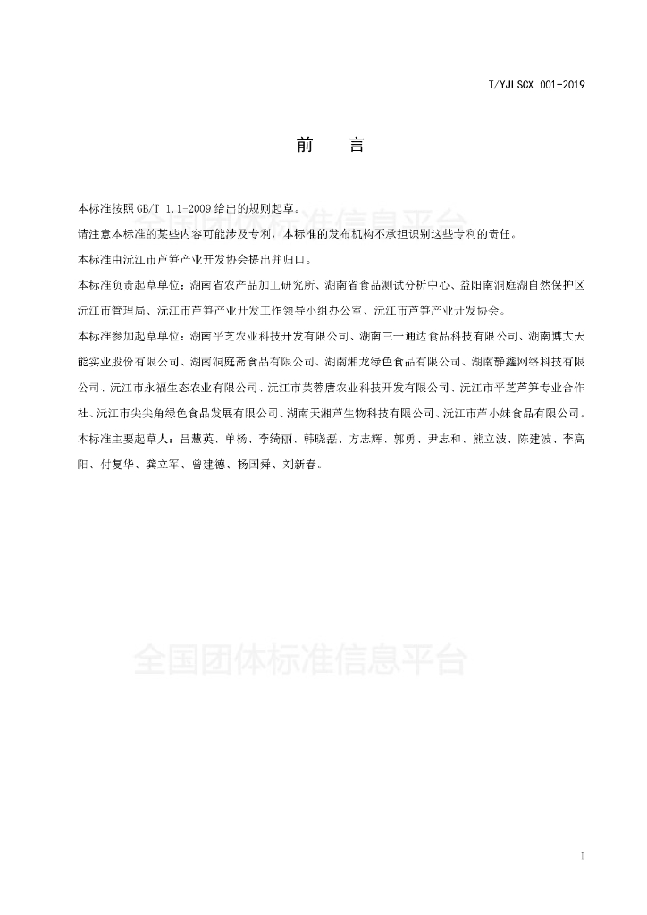 湖南省农产品加工研究所、湖南省食品测试分析中心、益阳南洞庭湖自然保护区沅江市管理局、沅江市芦笋产业开发工作领导小组办公室、沅江市芦笋产业开发协会、湖南平芝农业科技开发有限公司、湖南三一通达食品科技有限公司、湖南博大天能实业股份有限公司、湖南洞庭斋食品有限公司、湖南湘龙绿色食品有限公司、湖南静鑫网络科技有限公司、沅江市永福生态农业有限公司、沅江市芙蓉唐农业科技开发有限公司、沅江市平芝芦笋专业合作社、沅江市尖尖角绿色食品发展有限公司、湖南天湘芦生物科技有限公司、沅江市芦小妹食品有限公司