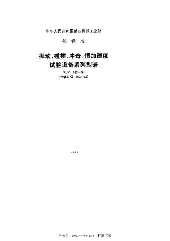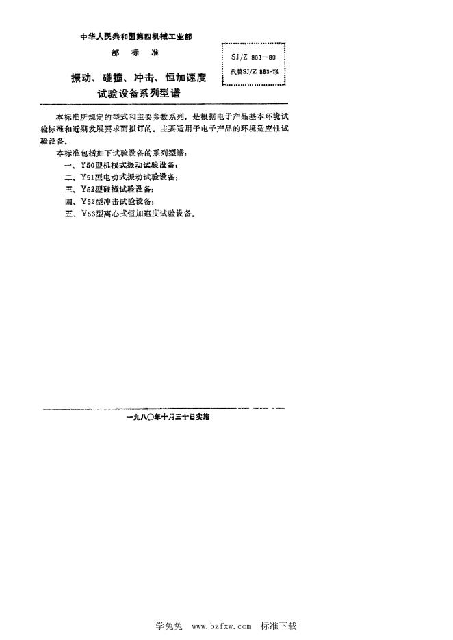 SJ/Z 863-1980 振动、碰撞、冲击、恒加速度试验设备系列型谱