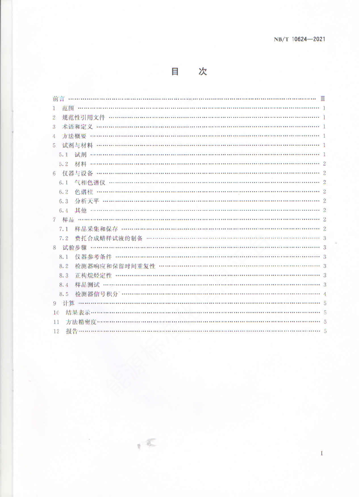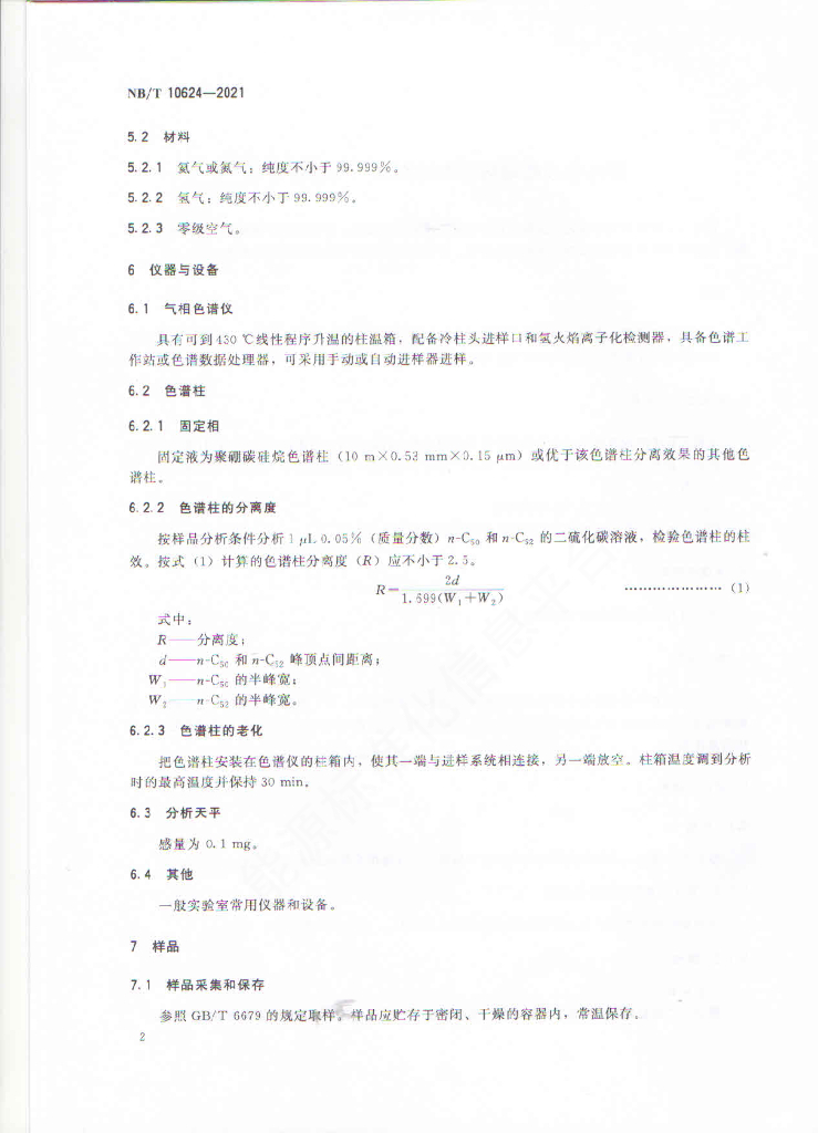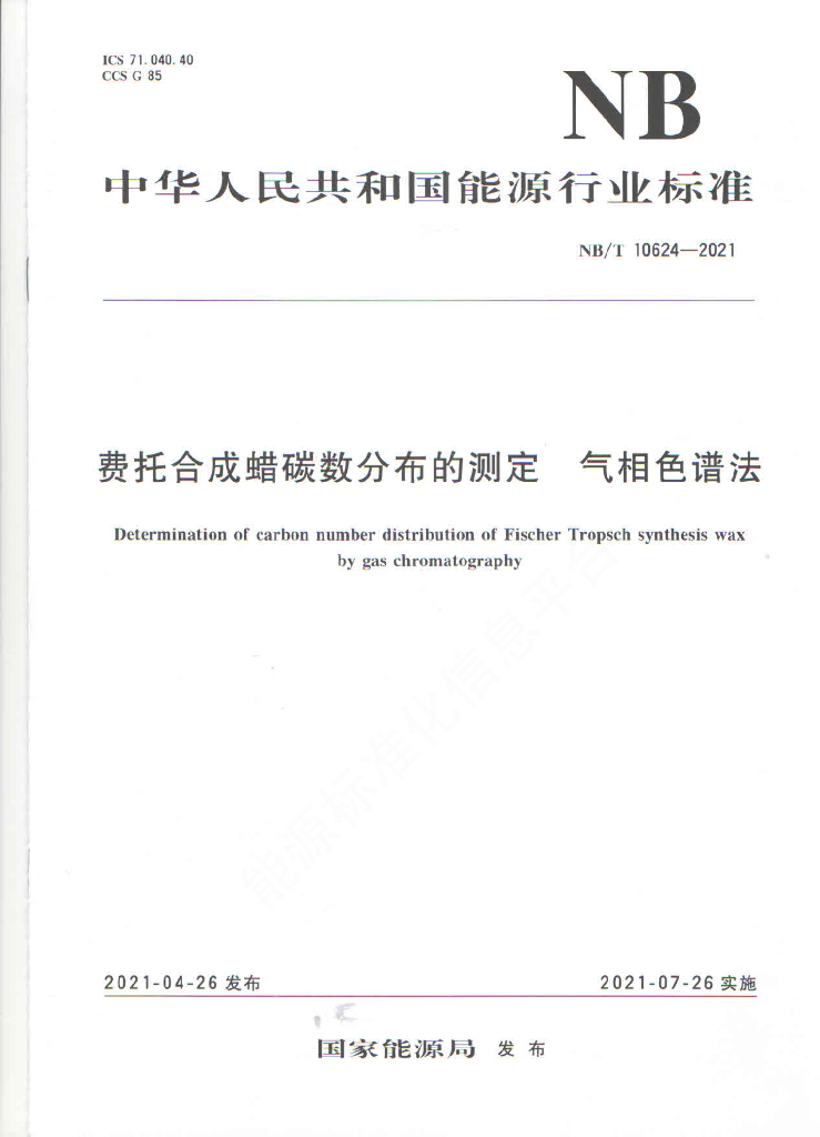 NB/T 10624-2021 费托合成蜡碳数分布的测定 气相色谱法