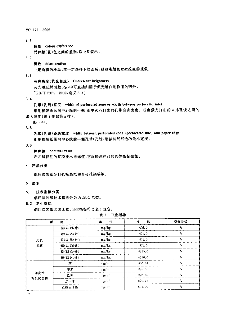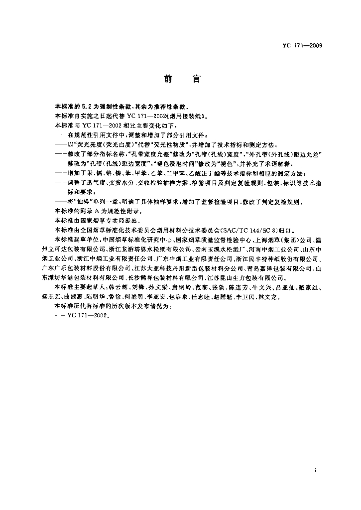 YC 171-2009 烟用接装纸
