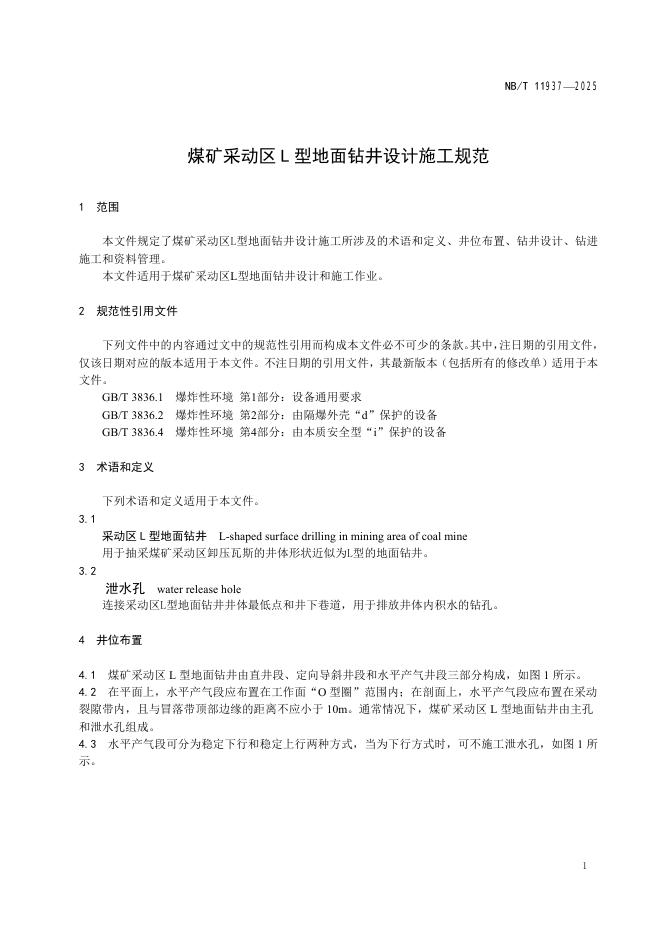 NB/T 11937-2025 煤矿采动区L型地面钻井设计施工规范