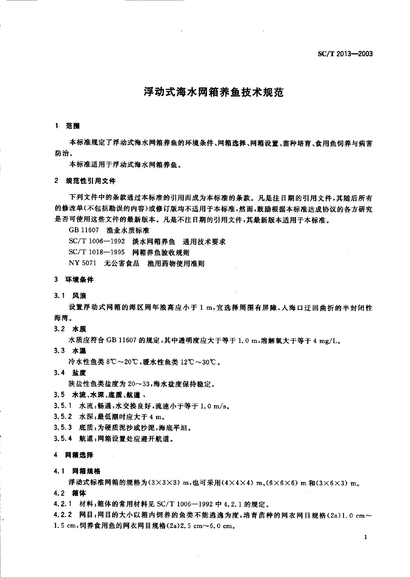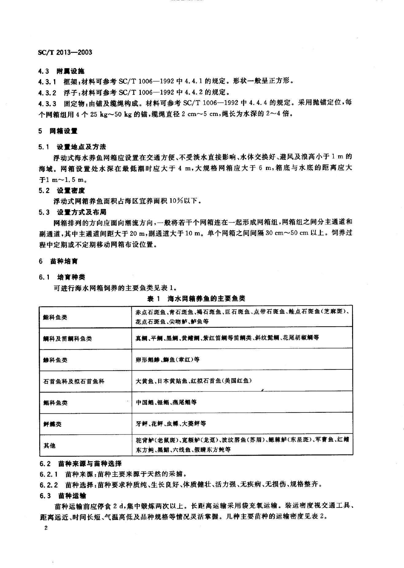 SC/T 2013-2003 浮动式海水网箱养鱼技术规范