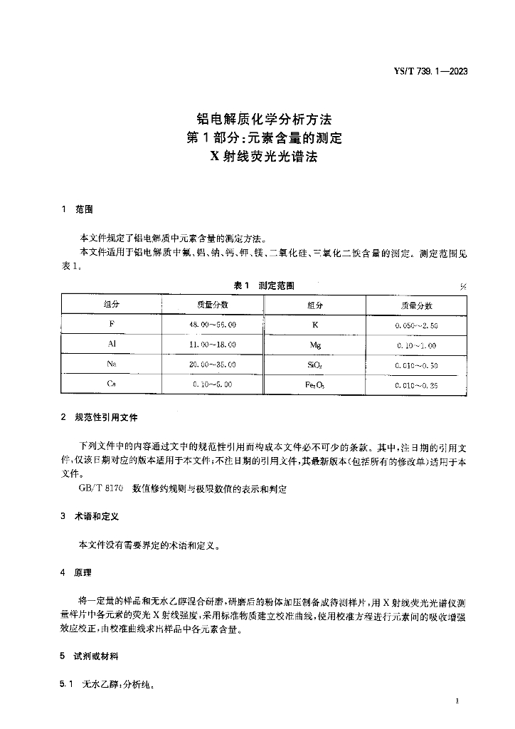 YS/T 739.1-2023 铝电解质化学分析方法 第1部分:元素含量的测定 X射线荧光光谱法