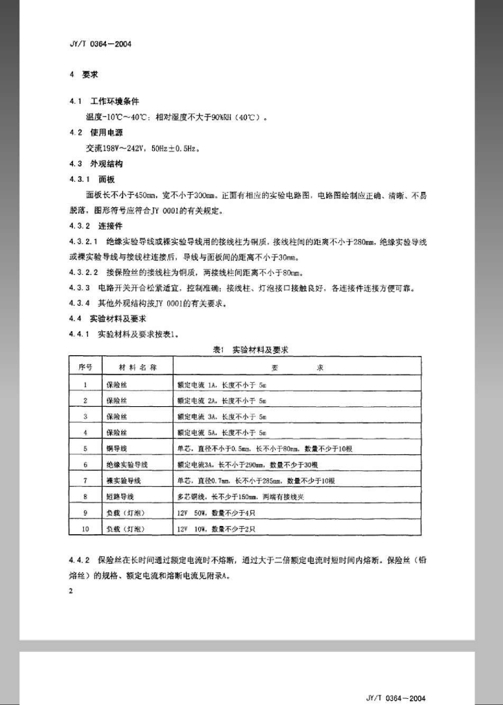 JY/T 0364-2004 保险丝作用演示器