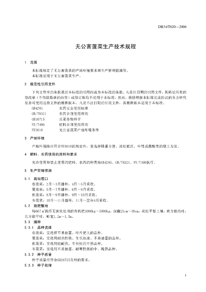 DB34/T 620-2006 无公害菠菜生产技术规程