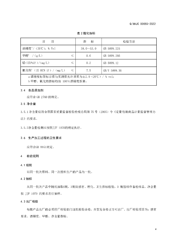 Q/XHJC 0005S-2022 葛根酒(配制酒)