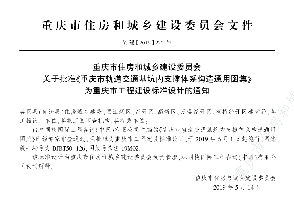 渝19M02 重庆市轨道交通基坑内支撑体系构造通用图集(DJBT50-126)