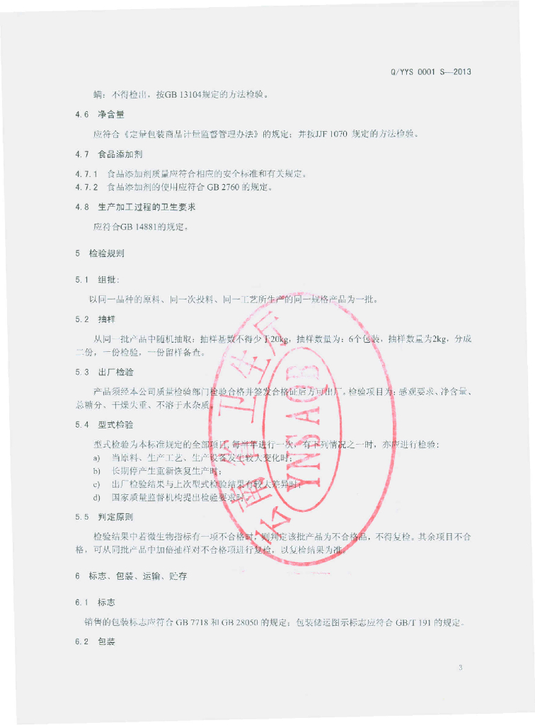 Q/YYS 0001S-2013 红糖(红糖制品)