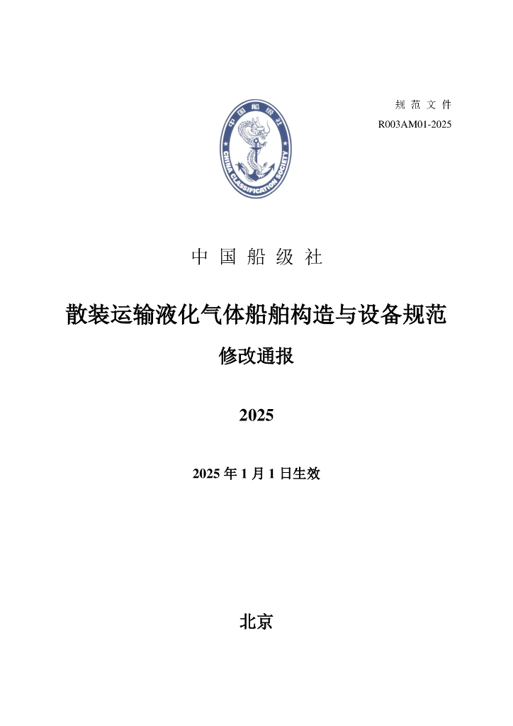 中国船级社(CCS):散装运输液化气体船舶构造与设备规范2025修改通报