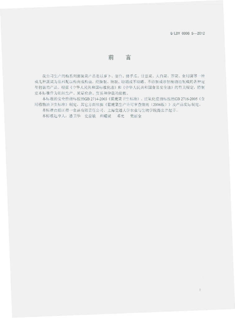 Q/LDY 0006S-2012 梅系列酱腌菜