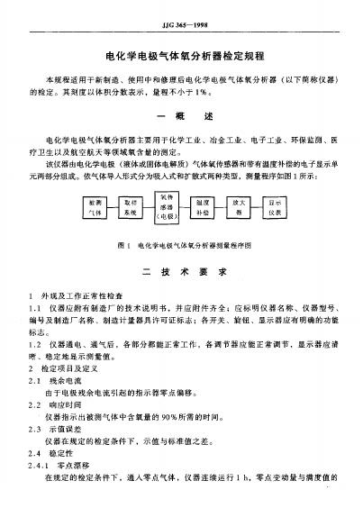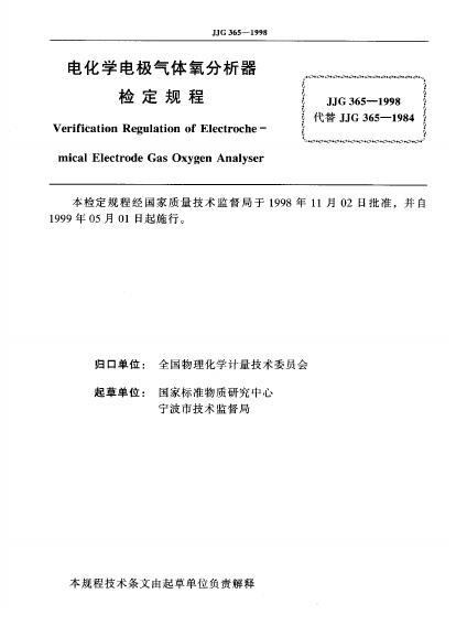JJG 365-1998 电化学电极气体氧分析器检定规程