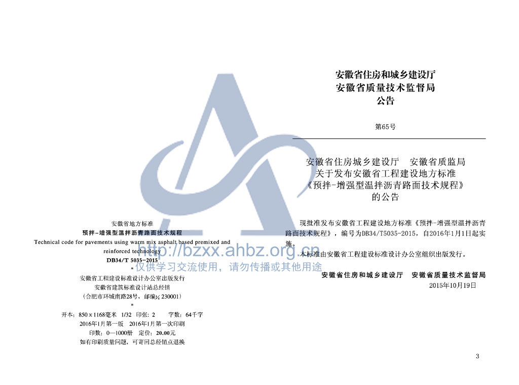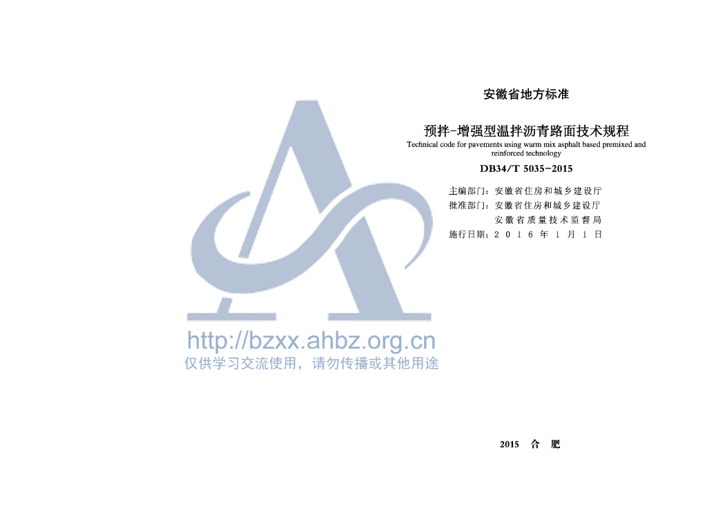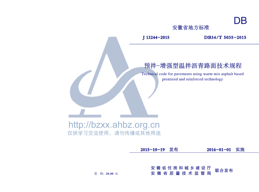 DB34/T 5035-2015 预拌-增强型温拌沥青路面技术规程