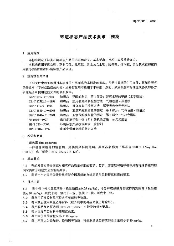 HJ/T 305-2006 环境标志产品技术要求 鞋类