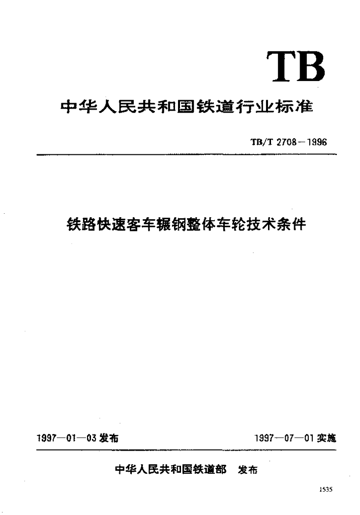 TB/T 2708-1996 铁道快速客车辗钢整体车轮技术条件