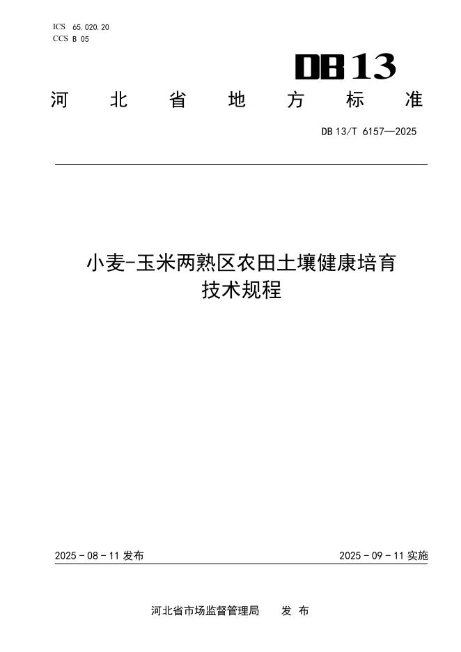 DB13/T 6157-2025 小麦-玉米两熟区农田土壤健康培育技术规程