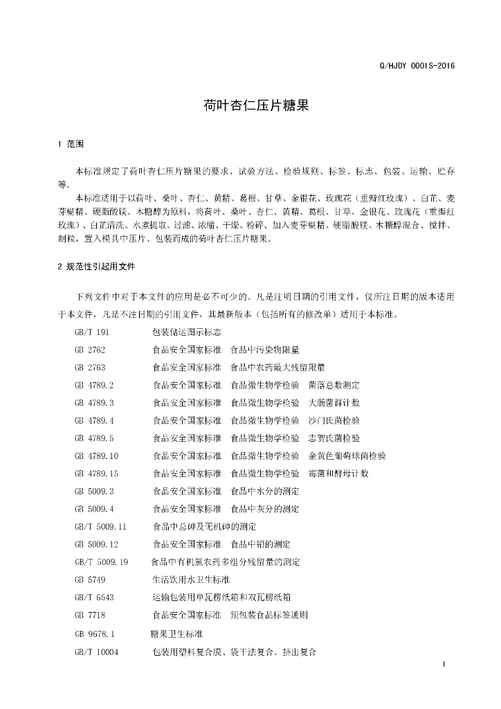 Q/HJDY 0001S-2016 河南九都缘生物科技有限公司 荷叶杏仁压片糖果